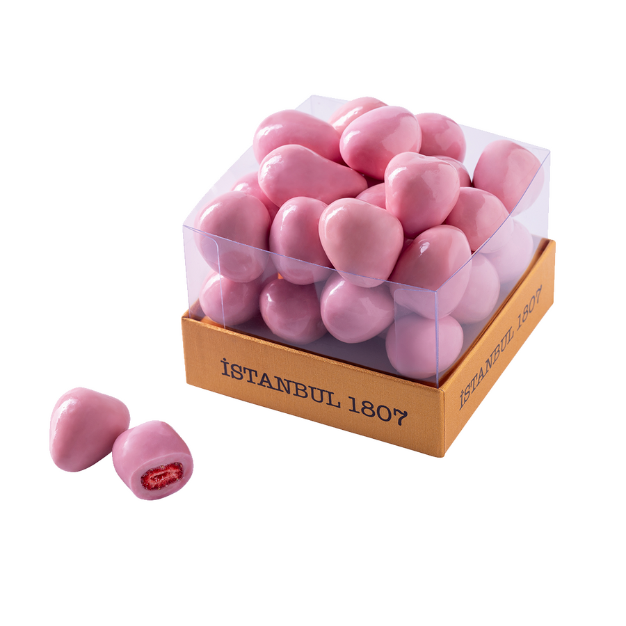 استمتع بنكهات إسطنبول مع حلوى دراجيه بنكهة الفراولة. اطلبها اليوم واستمتع بمذاق راحة الحلقوم التركية!