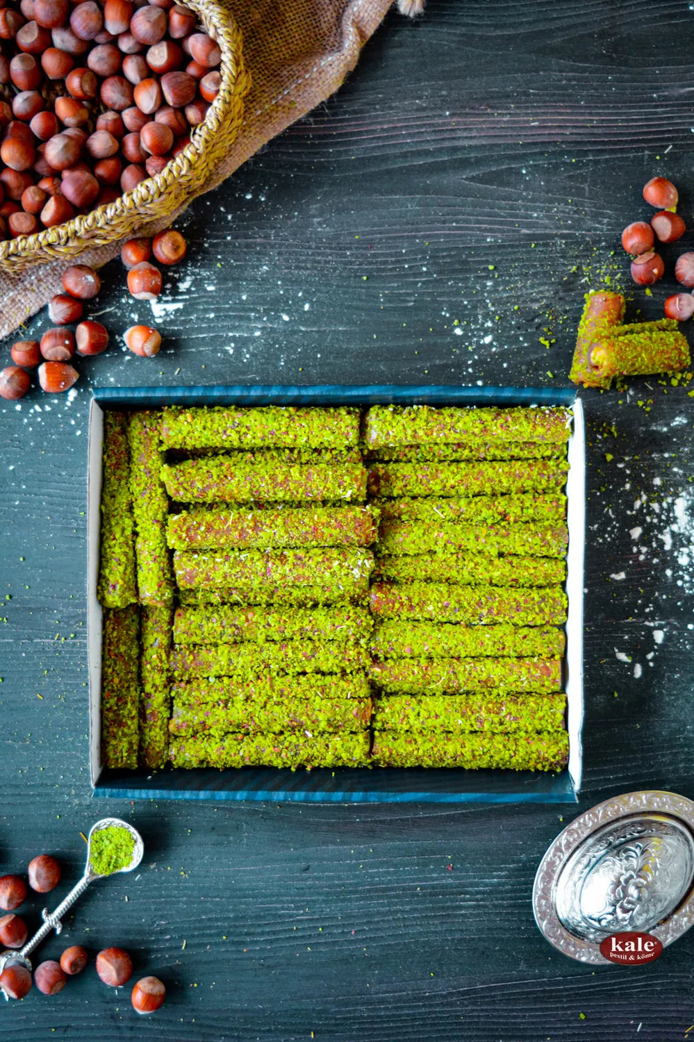 But we don't stop there – to add an extra layer of indulgence, we coat the outer surface of the rolled fruit pulp with crunchy pistachios sourced from the heart of Antep. The result? A delightful snack that tantalizes the taste buds with the irresistible combination of pistachios on the outside and hazelnuts on the inside.
