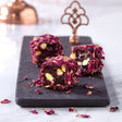 Αφεθείτε στις εξαίσιες γεύσεις της τούρκικης απόλαυσης με ρόδι και φιστίκι καλυμμένη με ροδοπέταλα. Κάθε μπουκιά είναι ένας απολαυστικός συνδυασμός κόκκινης τούρκικης απόλαυσης με γεύση ροδιού, τυλιγμένης σε αρωματικά ροδοπέταλα και πασπαλισμένης με τραγανά φιστίκια. Ίσως βρεθείτε σε θέση να μην μπορείτε να αντισταθείτε στην απόλαυση περισσότερων του ενός!
