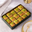 Ο τετράγωνος μπακλαβάς με φιστίκια σε μεταλλικό κουτί, ο οποίος είναι ένα απαραίτητο δώρο με τη χρυσοκίτρινη εμφάνισή του και τα μεγάλα φιστίκια στο εσωτερικό του, σας επιτρέπει να δοκιμάσετε την καλύτερη εκδοχή της γεύσης. Αυτή η γεύση, η οποία είναι ένα μοναδικό δώρο για τους αγαπημένους σας, είναι προσεκτικά τοποθετημένη σε μεταλλικά κουτιά. Αυτό το νόστιμο κουτί σας επιτρέπει να μοιραστείτε τον τετράγωνο μπακλαβά με φιστίκια φτιαγμένο από έμπειρους μάστορες με τους αγαπημένους σας. Μπορείτε να παραγγείλετε τον τετράγωνο μπακλαβά με φιστίκια σε μεταλλικό κουτί είτε από το κατάστημα είτε από την ηλεκτρονική σελίδα πωλήσεων. Αλλεργιογόνα: Ο τετράγωνος μπακλαβάς με φιστίκια περιέχει γλουτένη και φιστίκια. Μπορεί να περιέχει μικρές ποσότητες καρυδιών και φουντουκιών. Συστατικά: Ο τετράγωνος μπακλαβάς με φιστίκια περιέχει αλεύρι σίτου, βούτυρο διαυγασμένο, πυρήνες φιστικιών, ζάχαρη τεύτλων, νερό, άμυλο σίτου, αυγό, αλάτι. Δεν περιέχει σιρόπι γλυκόζης.