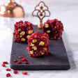 Αφεθείτε στις μοναδικές γεύσεις του Wicked Turkish Delight με ρόδι και φιστίκια, καλυμμένο με σταφύλια Zereşk. Αυτή η απολαυστική λιχουδιά συνδυάζει τη γλυκύτητα του ροδιού και των φιστικιών με την πικάντικη γεύση των σταφυλιών Zereşk, δημιουργώντας μια πραγματικά αξέχαστη γευστική εμπειρία.