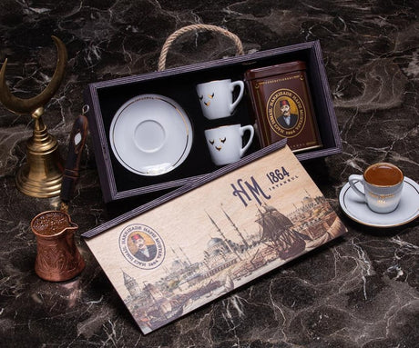 Σετ Τούρκικα φλιτζάνια καφέ 2 τεμαχίων σε χειροποίητο ξύλινο κουτί