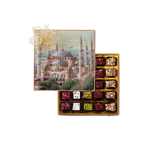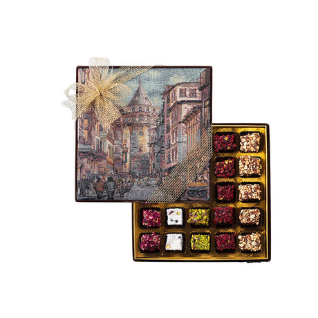 Ειδική χειροποίητη τουρκική απόλαυση σε κουτί με υφαντά από ταπισερί του Πύργου του Γαλατά