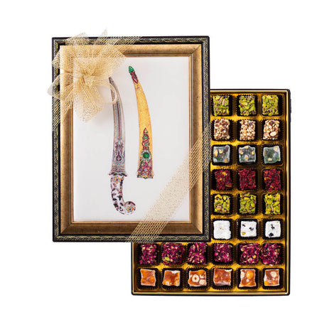 Μικτή ειδική τουρκική απόλαυση σε κουτί δώρου με οθωμανικό μαχαίρι