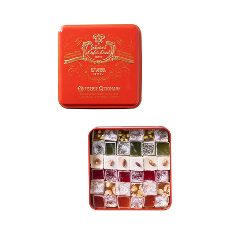 Χειροποίητη ειδική τουρκική απόλαυση σε οθωμανικό τετράγωνο κουτί