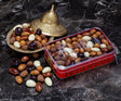 Delight in the perfect blend of flavors with our Variété d'arômes Dragee Assortis, presented in an elegant large metal box. This assortment offers a tempting mix of premium nuts and dried fruits, coated in layers of rich chocolate or candy shells, creating a luxurious snacking experience.