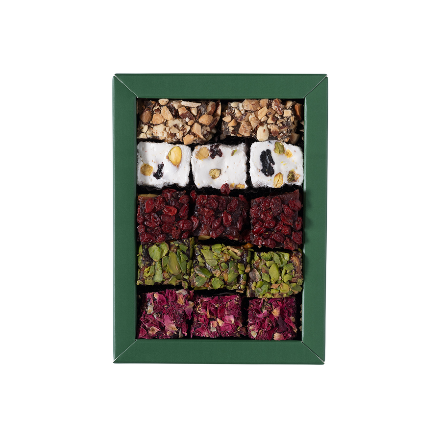 Tenha em atenção que os tipos especiais de Turkish Delight podem variar consoante a disponibilidade de stock, garantindo uma experiência única e emocionante em cada caixa.